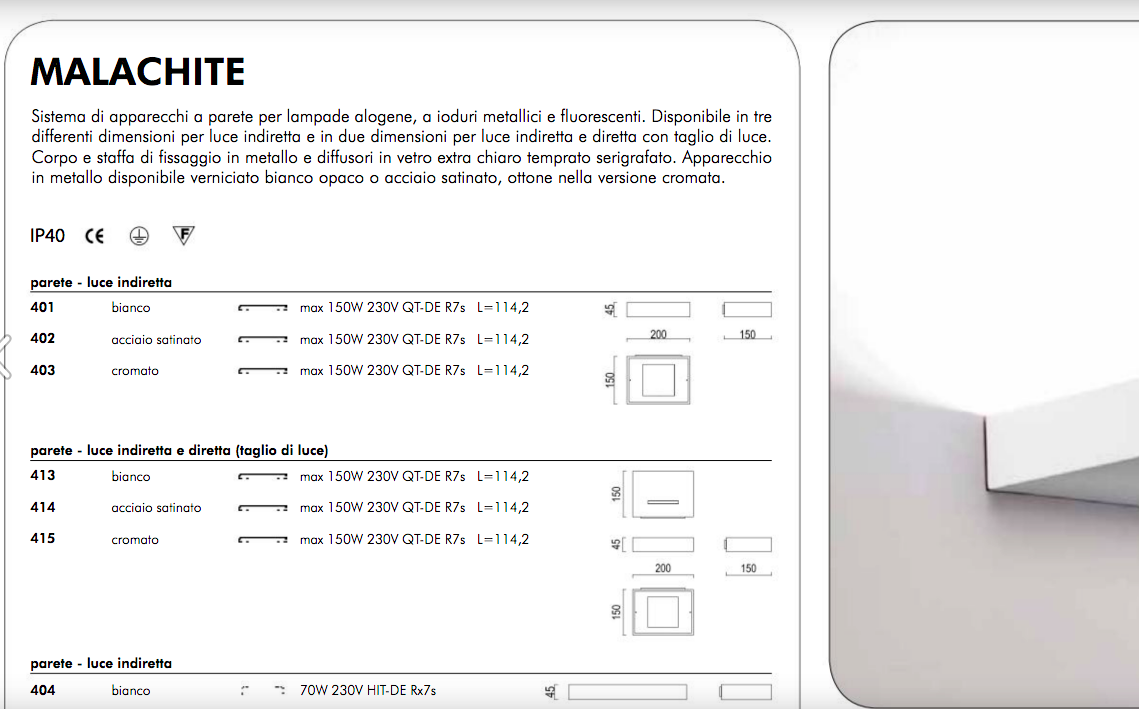Ares / Sera Malachite Acciaio Satinato 150W R7s Art. 402