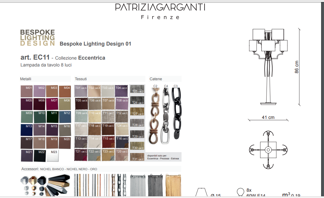 Baga Patrizia Garganti Collezione Eccentrica 8 Luci Bespoke 1 Promo Esposizione!
