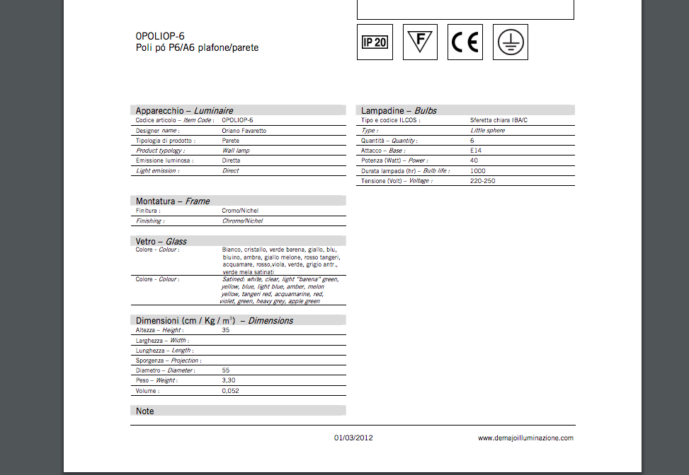 De Majo Illuminazione Poli Pò P6 Lampada A Soffitto Promo Esposizione!