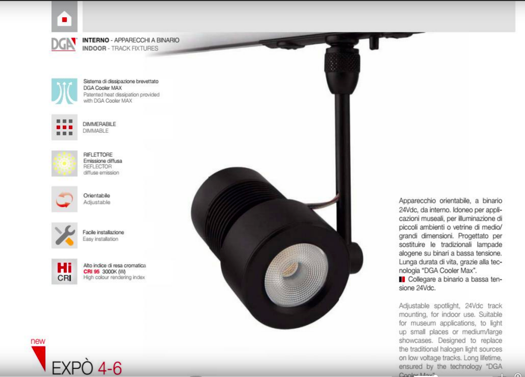 DGA Expò 4W Nero 3000°K 720896.46 Apparecchio Orientabile A Binario 24VDC IP40