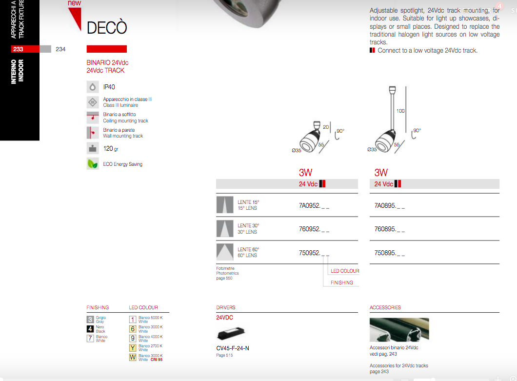 DGA Decò Nero Orientabile 3W 3000°K Lente 15° 7A0952.461 IP40 Su Binario 24 Vdc