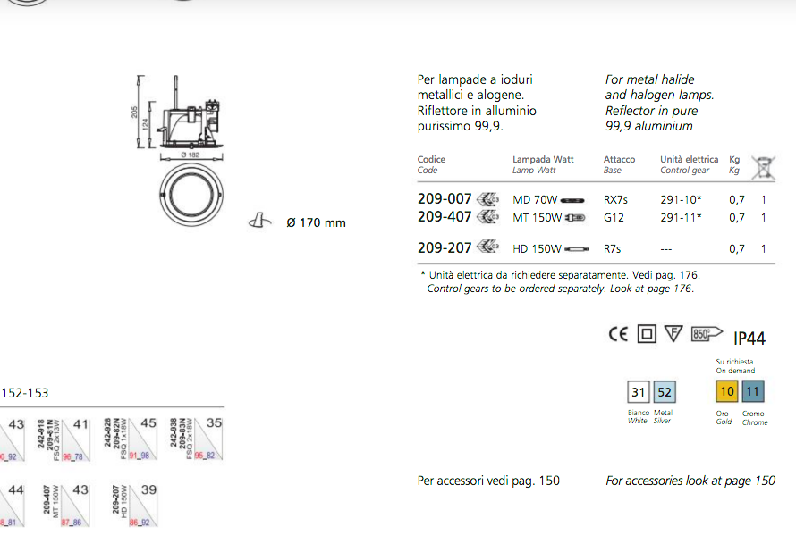 Ivela RA 18 Bianco Rx7s 70W Incasso Professionale A Soffitto
