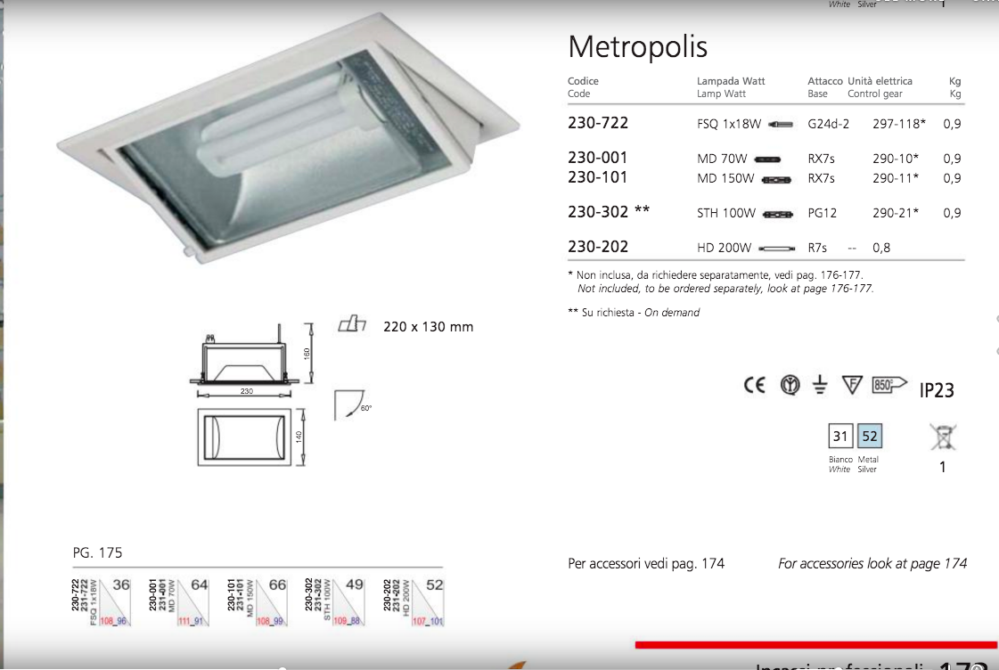 Ivela Metropolis Orientabile Silver Vetro Satinato MD 150W Rx7s Art. 230-101-52