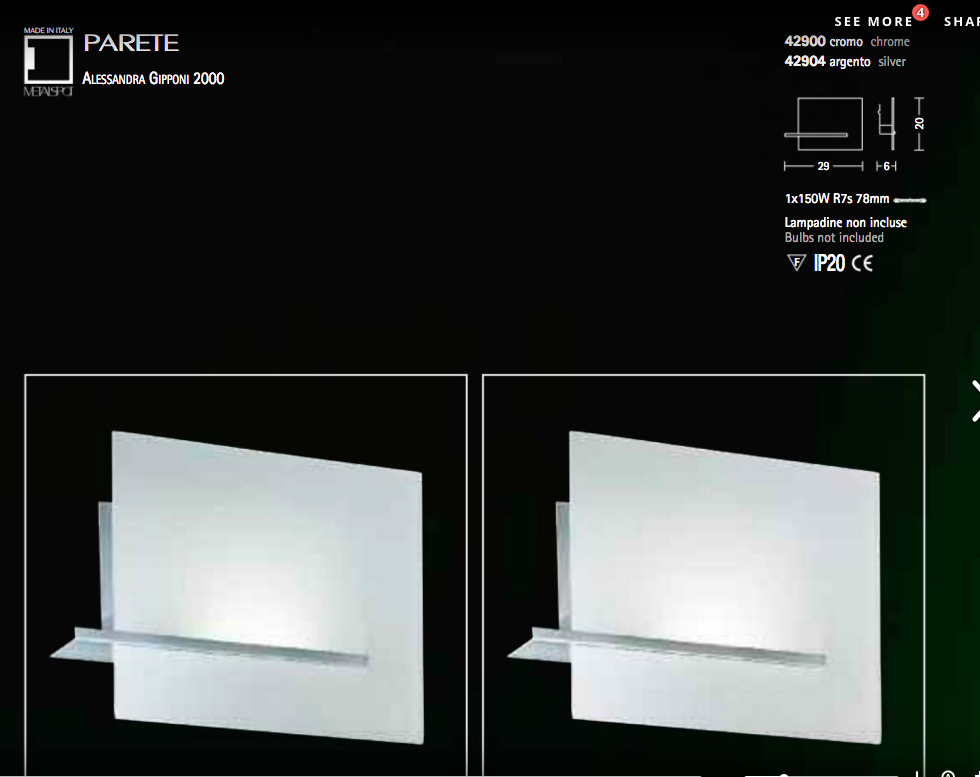 Metalspot Parete Cromo Art. 42900 R7s Applique Promo Esposizione!