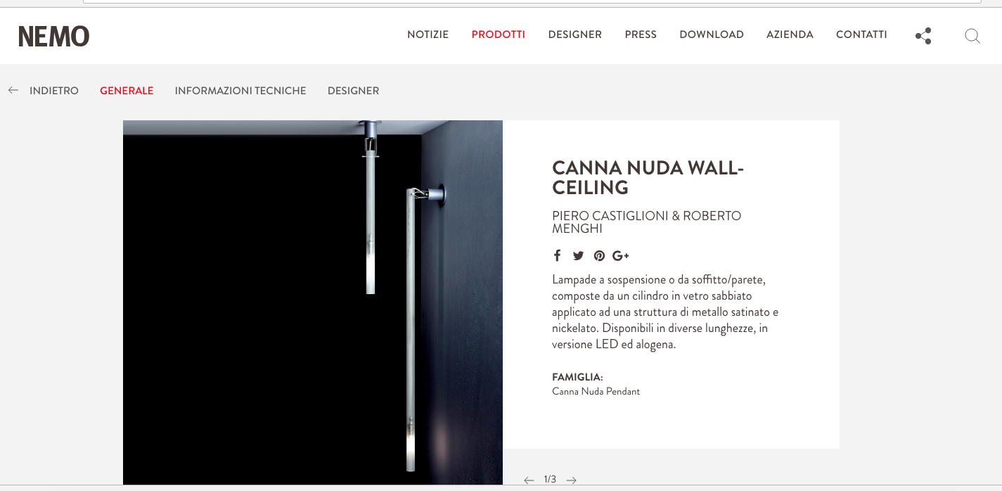 Omikron / Nemo Canna Nuda Vetro 75 cm Soffitto / Parete P.Castiglioni