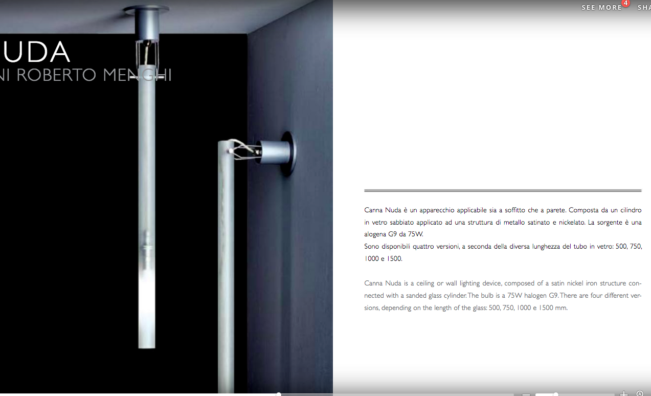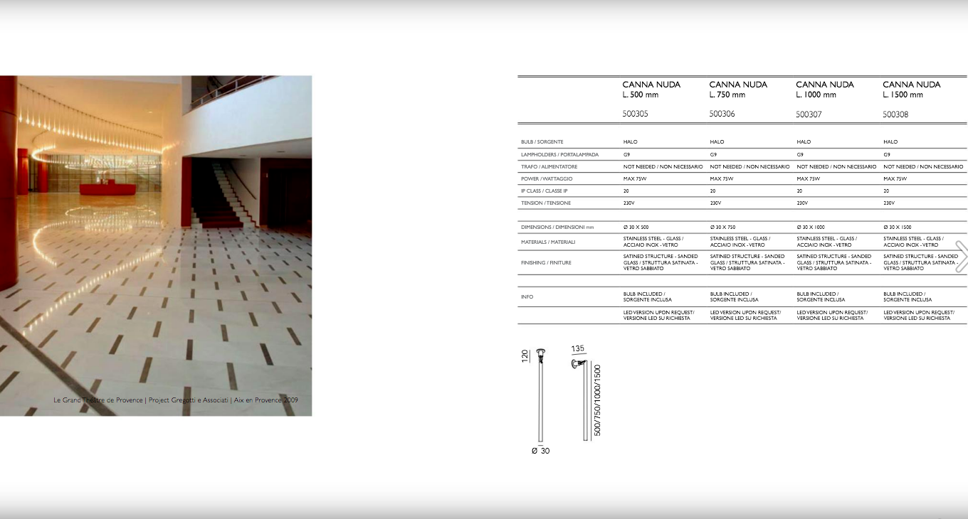 Omikron / Nemo Canna Nuda Vetro 75 cm Soffitto / Parete P.Castiglioni