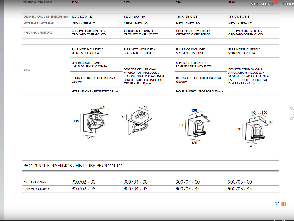 Cattaneo Snake Parete 720/1 A R7S Bianca Versione Sinistra P