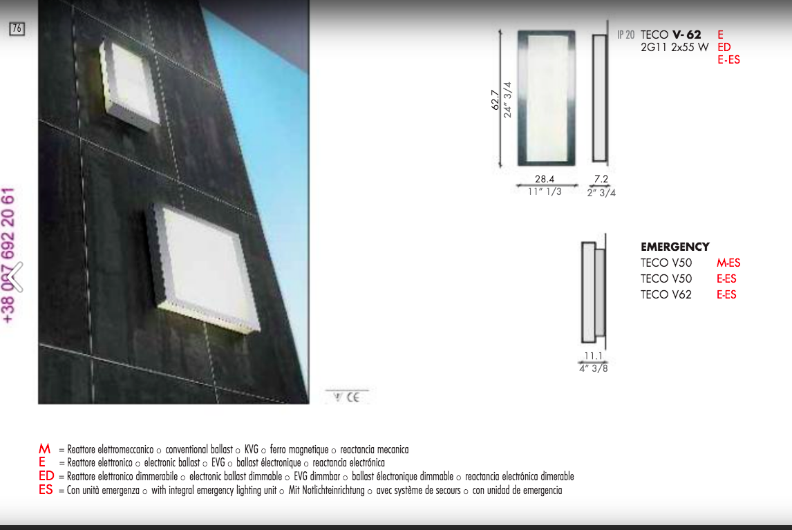Oty Light Teco V 50 2G11 2x36W Parete / Soffitto