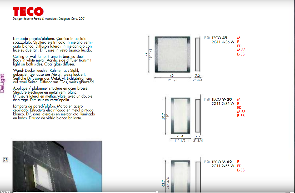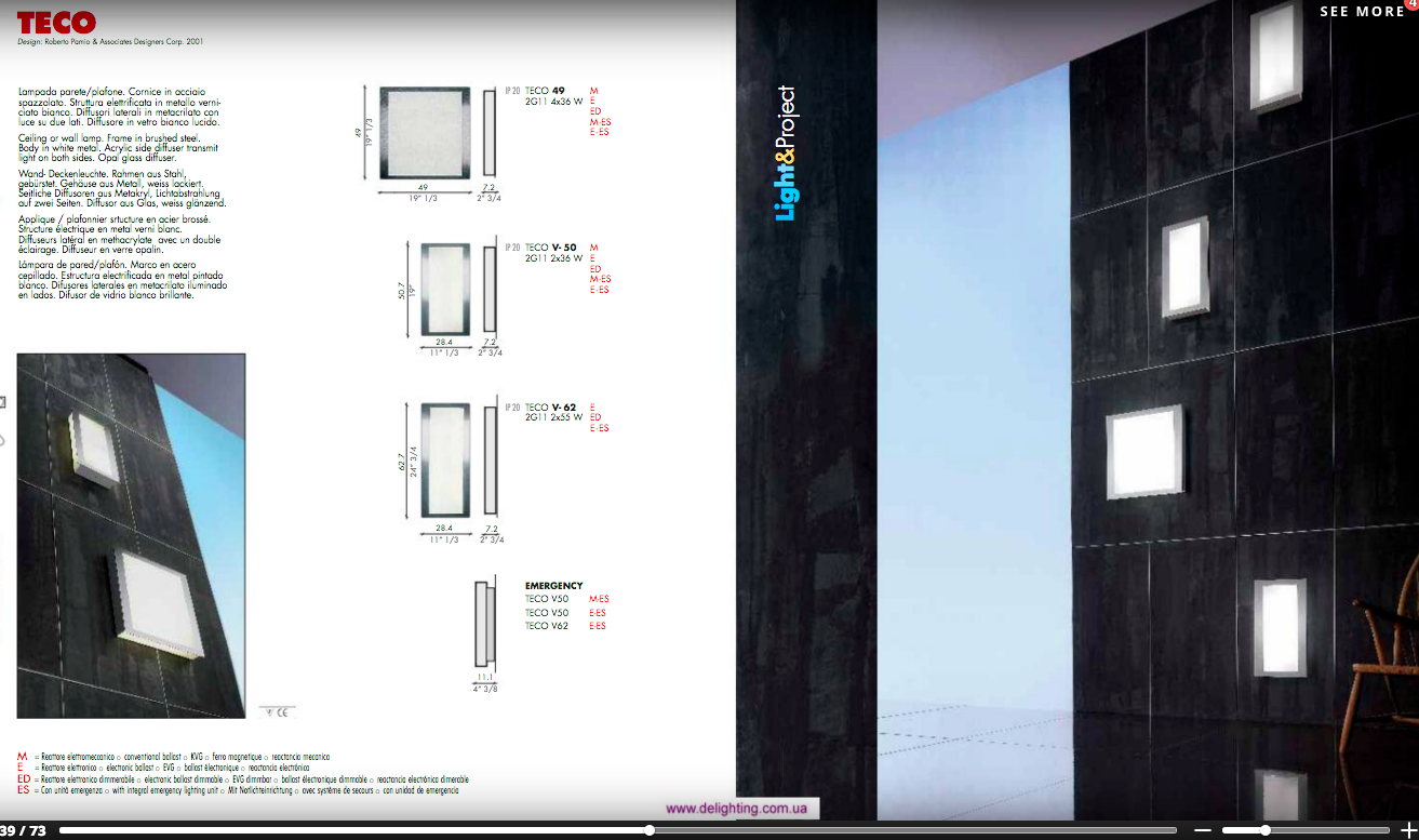 Oty Light Teco V 50 2G11 2x36W Parete / Soffitto