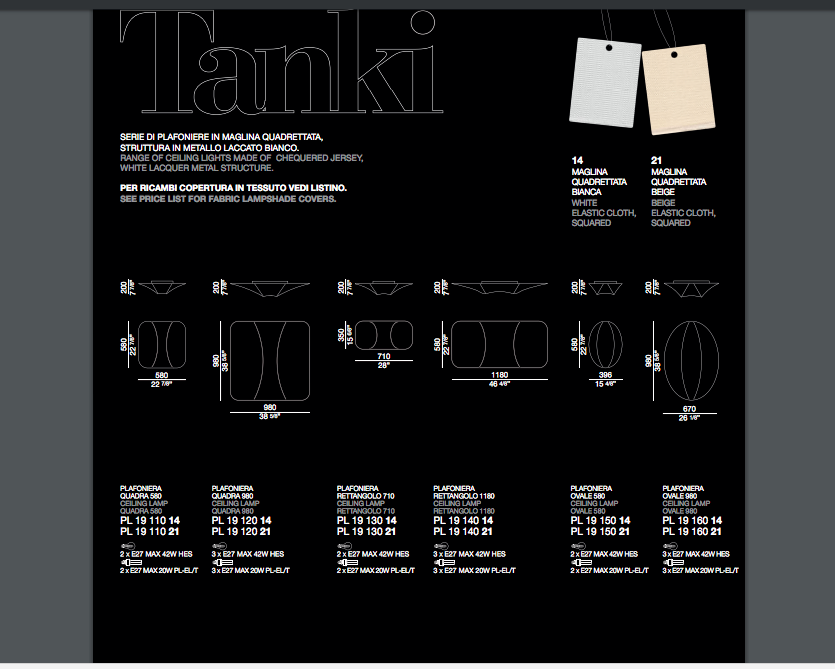 Rossini Tanki Plafoniera Ovale Maglina Bianca 58x15x20 cm Art. PL1915014