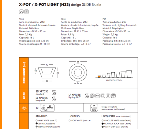 Slide Lampada Vaso Luminoso X - POT D-56 H.33 cm IP55 Esterno / Interno