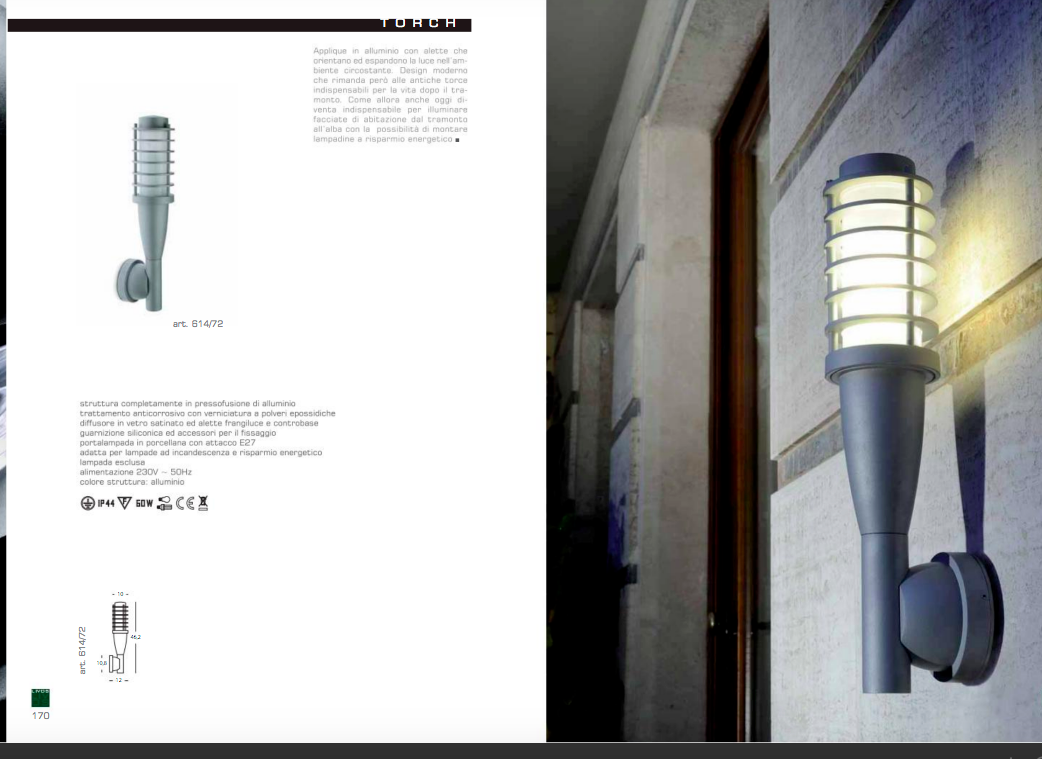 Sovil & Livos Torch Applique IP44 Art. 614/72 alluminio