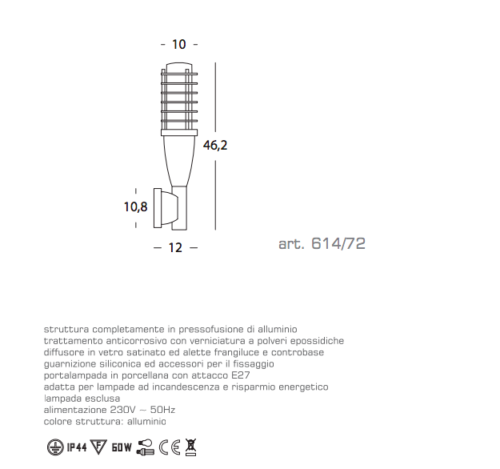 Sovil & Livos Torch Applique IP44 Art. 614/72 alluminio