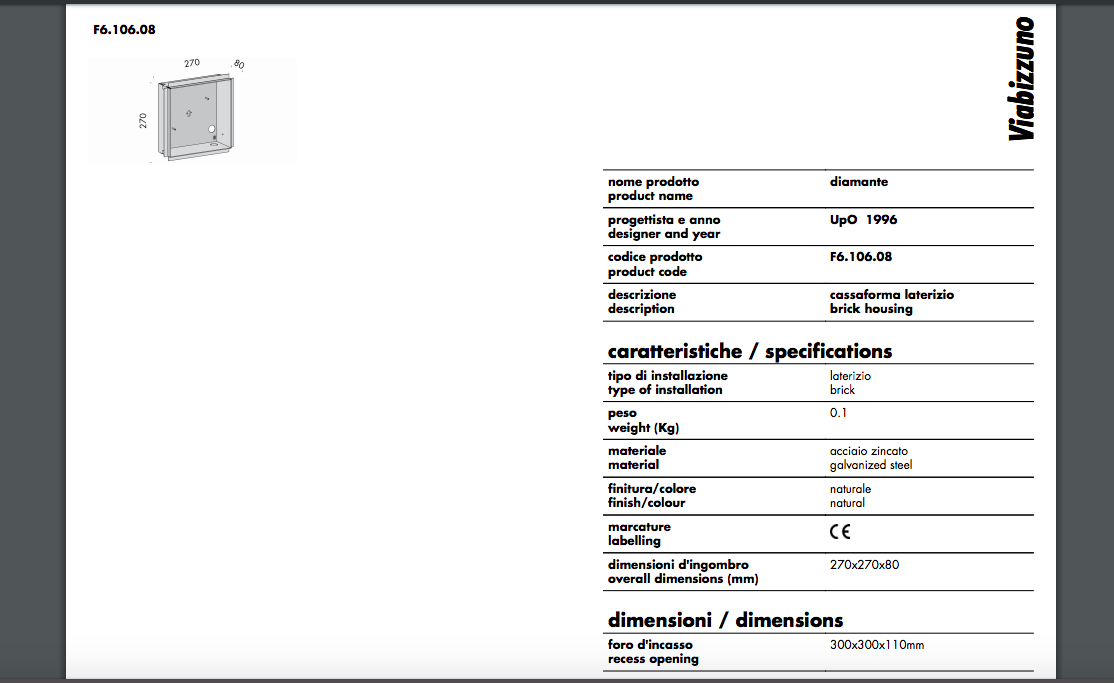 Viabizzuno Cassaforma Laterizio F6.106.08 Per Diamante
