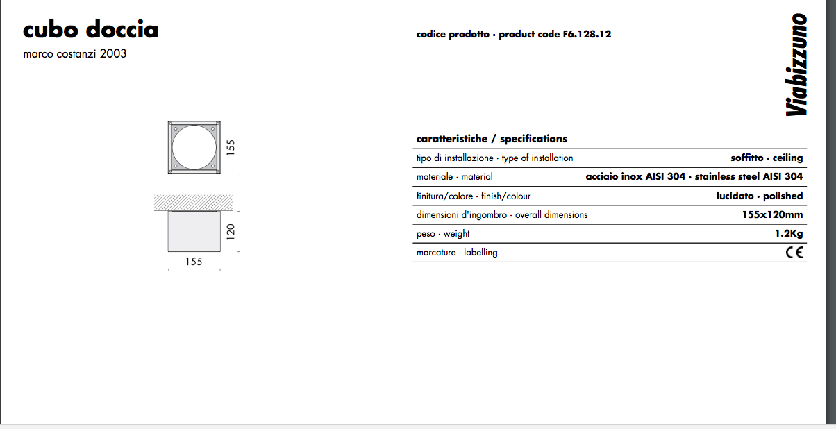 Viabizzuno Corpo + Piastra Cubo Doccia Medium Plafone Lucido + Kit Dicro GU4 35W