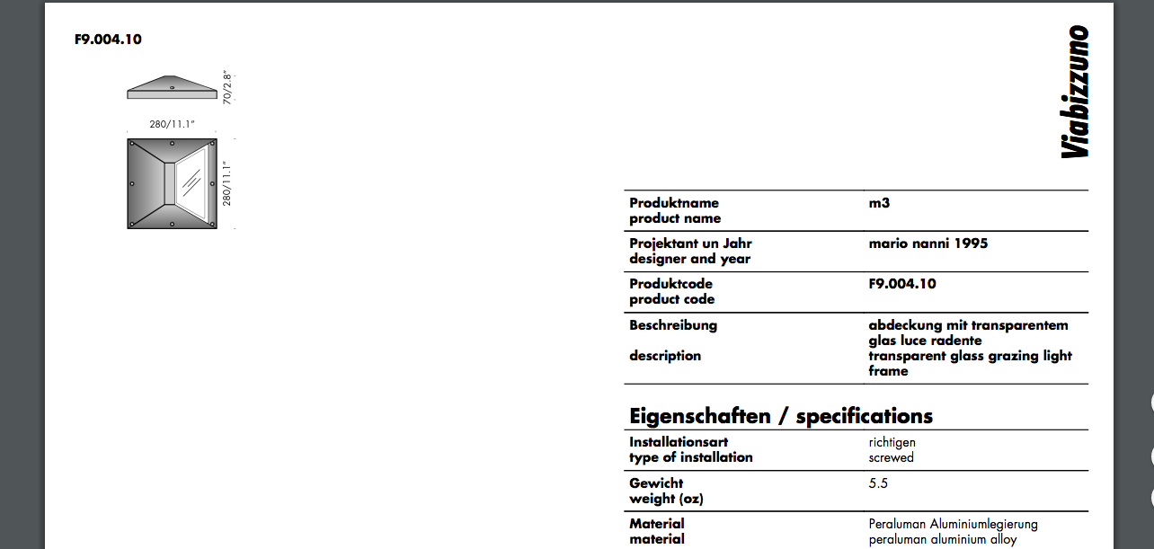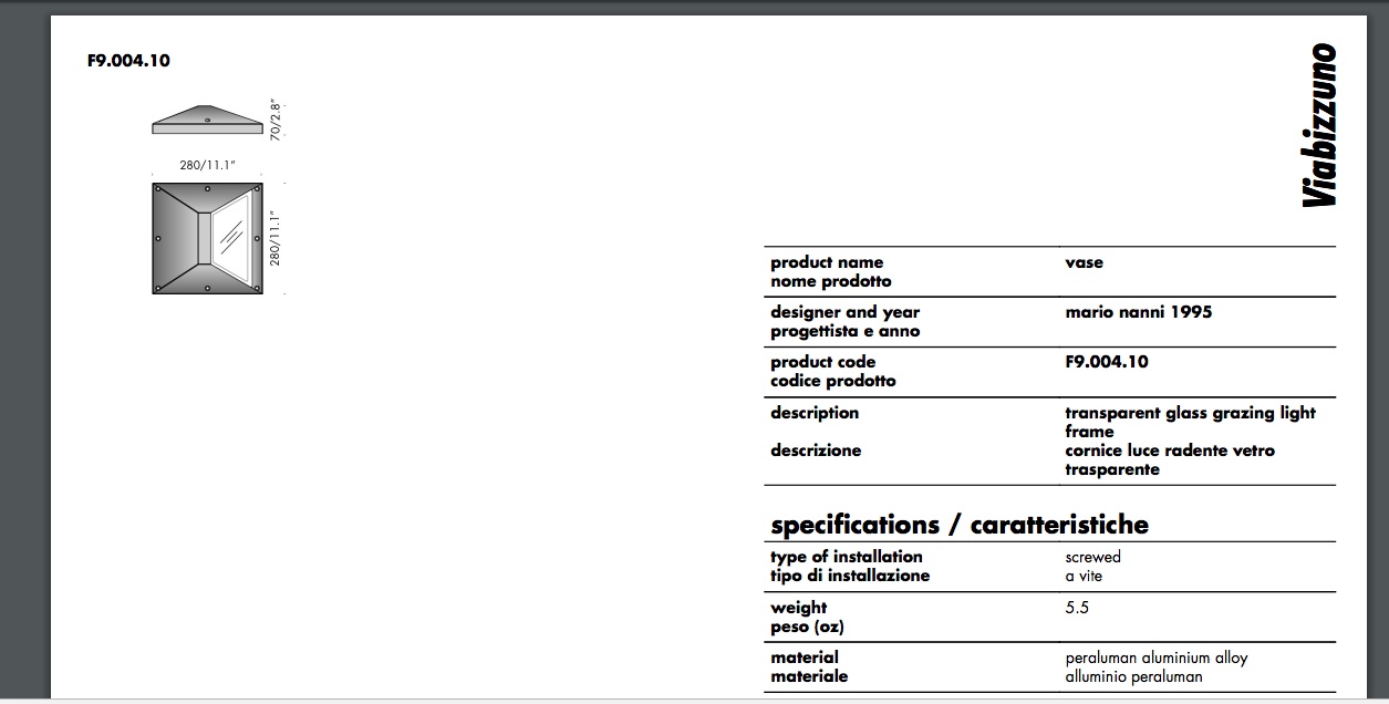 Viabizzuno Cornice Luce Radente Vetro Trasparente Per M3 / Vase / Big Feet F9.004.10