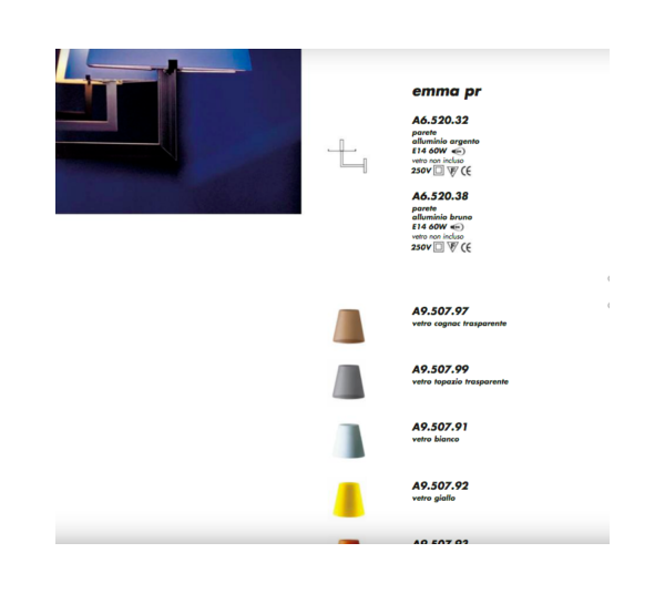 Viabizzuno Emma Vetro Giallo Applique E14 60W A9.507.92 + A6.520.32