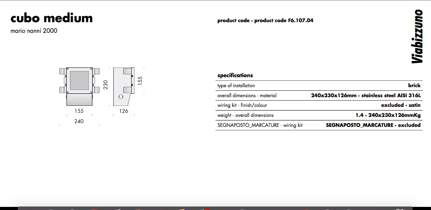 Viabizzuno Cubo Medium Incasso Laterizio F6.107.04 Cassaforma + Cornice Inox Satinato