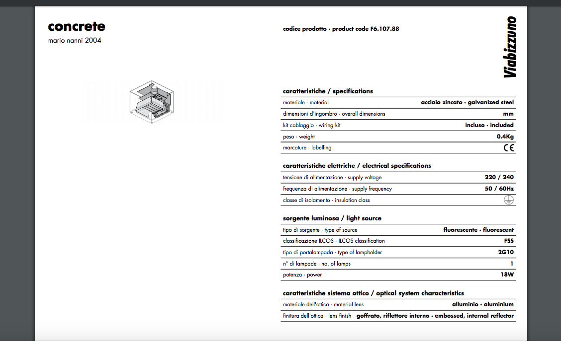 Viabizzuno Kit Fluo 2G10 18W F6.107.88 Per Cubo Medium / Concrete
