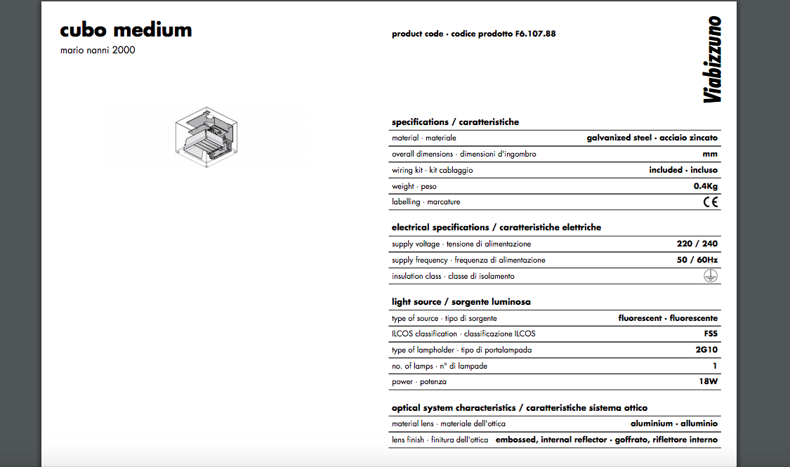 Viabizzuno Kit Fluo 2G10 18W F6.107.88 Per Cubo Medium / Concrete