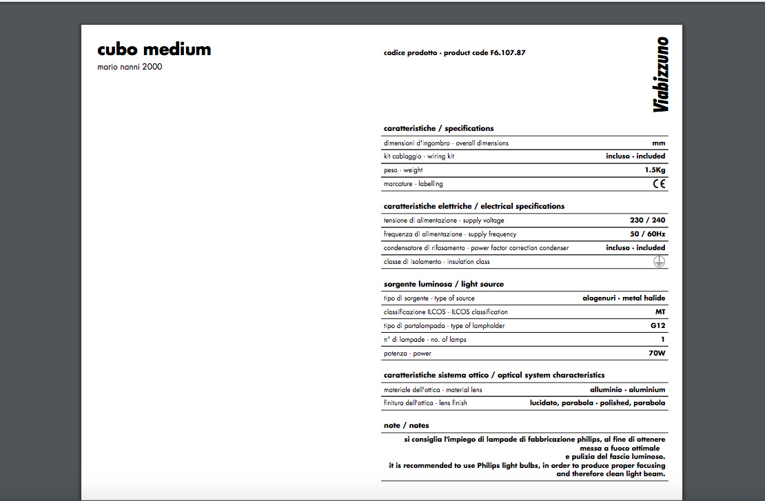 Viabizzuno Kit Alogenuri G12 70W 8° F6.107.87 Per Cubo Medium / Concrete
