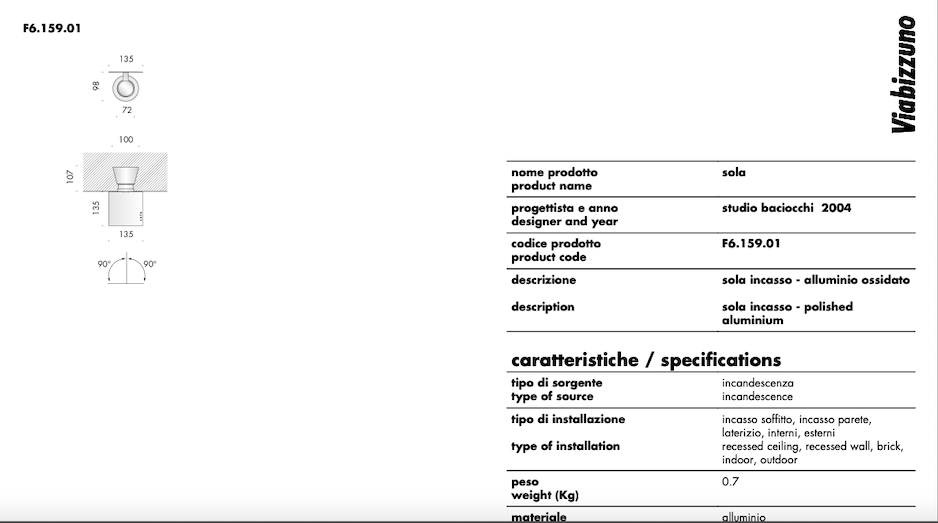 Viabizzuno Sola Incasso Inox Lucido Applique E27 + Lampadina F6.159.01