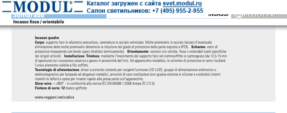Reggiani Kit Sombrado Led Incasso Quadro 16W Art. 31121