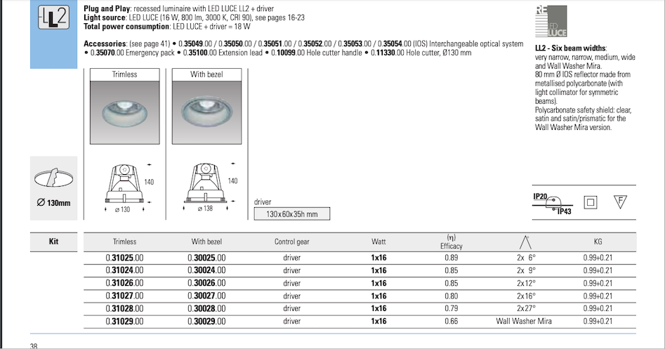 Reggiani Kit Unisio Led Incasso Bianco 16W 2x16° D130 Art.30027 Flangia Visibile
