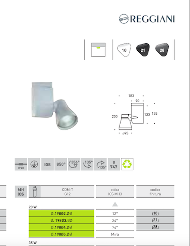 Reggiani Varios Proiettore Orientabile Grigio Metallizzato G12 70W Art. 0.19814.0028