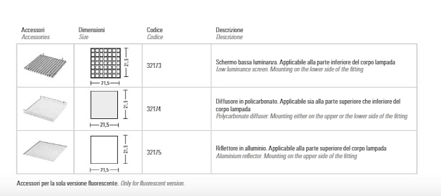 32174 Diffusore in policarbonato. Applicabile sia alla parte superiore che inferiore del corpo lampada (21,5 x 21,5 cm)