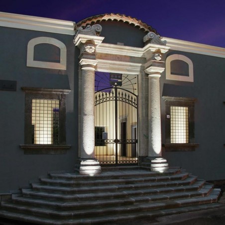 Apparecchio tondo da incasso a pavimento.