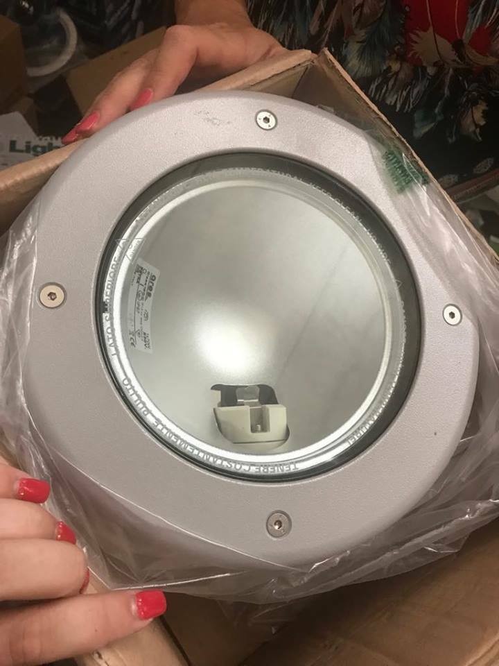Apparecchio tondo da incasso a pavimento.