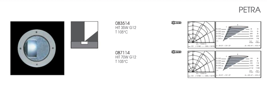 Apparecchio tondo da incasso a pavimento. Configurazione: corpo dell' apparecchio in alluminio pressofuso lega EN AB-47100 (a basso contenuto di rame) e ghiera in acciaio inox AISI 316L. Diffusore in vetro temperato trasparente o sabbiato. Rivestimento doppio strato ad alta resistenza alla corrosione: Le parti in alluminio sono verniciate con un doppio strato con polveri in linea con lo standard QUALICOAT: un primo strato di polvere epossidica (con ottima resistenza chimica e meccanica) e un secondo strato di finitura di polvere poliestere (resistente ai raggi UV ed agenti atmosferici). L' intero processo di verniciatura inizia dai componenti che sono stati precedentemente sabbiati per rendere la superficie più porosa e garantire una maggiore adesione della vernice. Ares effettua lavaggi alcalini e acidi per pulire completamente le superfici, risciacqua con acqua demineralizzata per rimuovere eventuali particelle di residui, in seguito esegue un trattamento di conversione chimica per proteggere contro la ruggine. Grado di protezione: IP67 In conformità con la norma EN 60598-1 Classe di isolamento: I