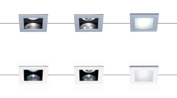 Apparecchi da incasso per contro soffitto dalle ridotte dimensione per lampade alogene a bassissima tensione. Disponibile nella versione senza vetro. Nella versione senza vetro il corpo in alluminio è verniciato colore nero e la ghiera è disponibile verniciata alluminio. IP20