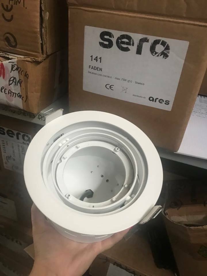 Apparecchio ad incasso con cornice per cartongesso a una,due, tre luci orientabili, dalla forma arrotondata. Disponibili nelle versioni con lampada a ioduri metallici, lampade alogene a bassissima tensione o lampade miste, in due colori: con corpo in acciaio verniciato nero e cornice colore alluminio, con corpo e cornice colore bianco. Gruppo ottico interno in alluminio pressofuso che consente un'inclinazione massima della lampada di 30° rispetto all'asse. Nella versione con lampada a ioduri mettallici l'apparecchio è fornito con riflettore in alluminio 40° e con vetro di protezione UV.