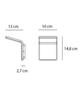 "Questo progetto vuole raggiungere un sano equilibrio, inteso come proporzione delle forme, e rapporto tra materia e tecnologia. Per disegnare una forma che non fosse tale ma che diventasse sostanzialmente l’abito della luce, sono ricorso alla geometria pura: due piani che si incontrano nello spazio, disegnano una linea e nient’altro". Materiali: struttura in alluminio verniciato, schermo in materiale termoplastico stampato ad iniezione.