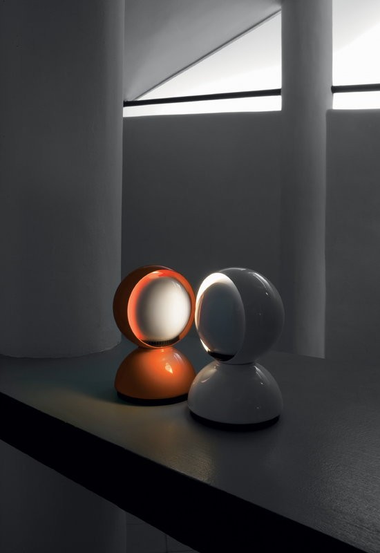 Eclisse, disegnata da Vico Magistretti nel 1965, ha vinto il Compasso d'Oro nel 1967 ed è diventata la rappresentante del design italiano nel mondo. Eclisse è un equilibrio all'avanguardia tra forma e funzione, design e utilità. La base del concetto sta nella sua funzionalità di regolazione dell'intensità della luce attraverso il suo paralume interno rotante che "eclissa" la sorgente luminosa. Infatti, con un involucro esterno fisso e un involucro interno mobile, la lampada può fornire luce diretta o diffusa. Lampada da tavolo, può anche essere montata a parete. Corpo in metallo verniciato disponibile nei colori bianco, rosso o arancione con interruttore on/off. Eclisse fa parte della collezione permanente dei più importanti Musei del design, tra cui il MoMa di New York e il Triennale Design Museum di Milano.