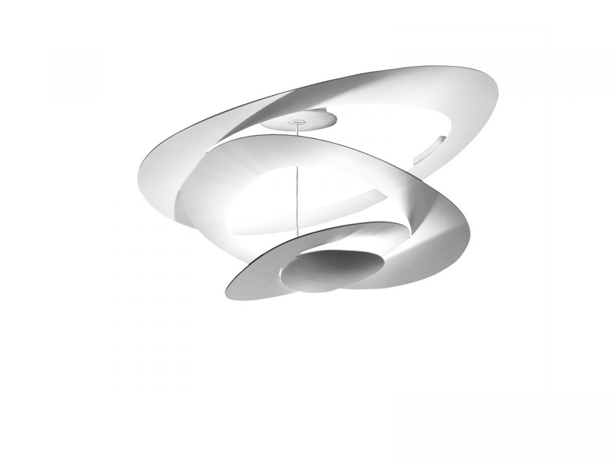 l design pluripremiato di Pirce è uno dei piu venduti da Artemide. Originariamente rilasciata in versione alogena, la sua sorgente luminosa è stata ripensata per incorporare un LED di alta qualità ed efficienza energetica. Pirce non è solo un'elegante lampada, ma anche una decorazione seducente con un forte senso di presenza sia accesa che spenta. Il suo disco sottile si fonde dolcemente in vortici fluenti che scorrono a spirale verso il basso per creare effetti di luce seducenti.