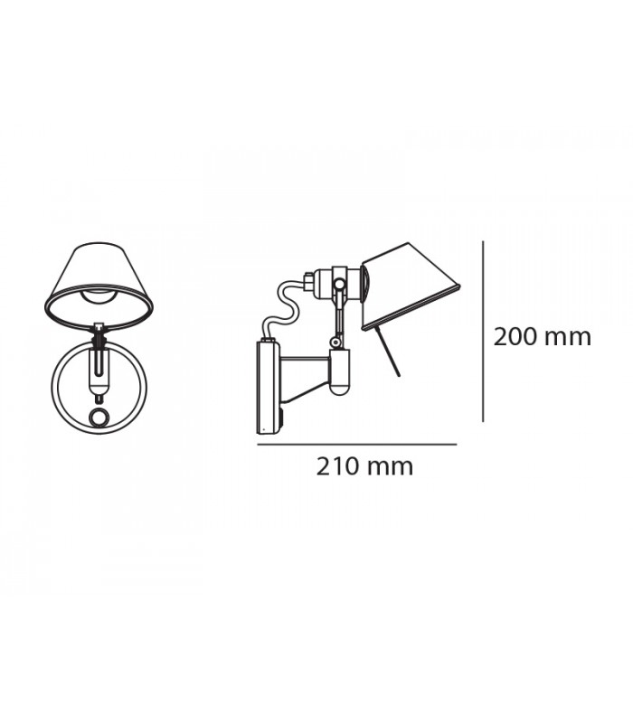 CARATTERISTICHE Codice Prodotto: A044050 Colore: Alluminio Installazione: Parete Materiale: Alluminio Serie: Design Collection design by: Michele De Lucchi, Giancarlo Fassina LUMINAIRE Watt : 5W Tensione di alimentazione: 220V-240V Flusso luminoso emesso: 267lm Efficiency: 57% Efficacy: 53.33lm/W CRI: 80 DIMENSIONI Altezza: 200 mm Profondità: 200 mm SORGENTI NON FORNITE Categoria: LED RETROFIT Numero: 1 Watt: 6W Attacco: E14