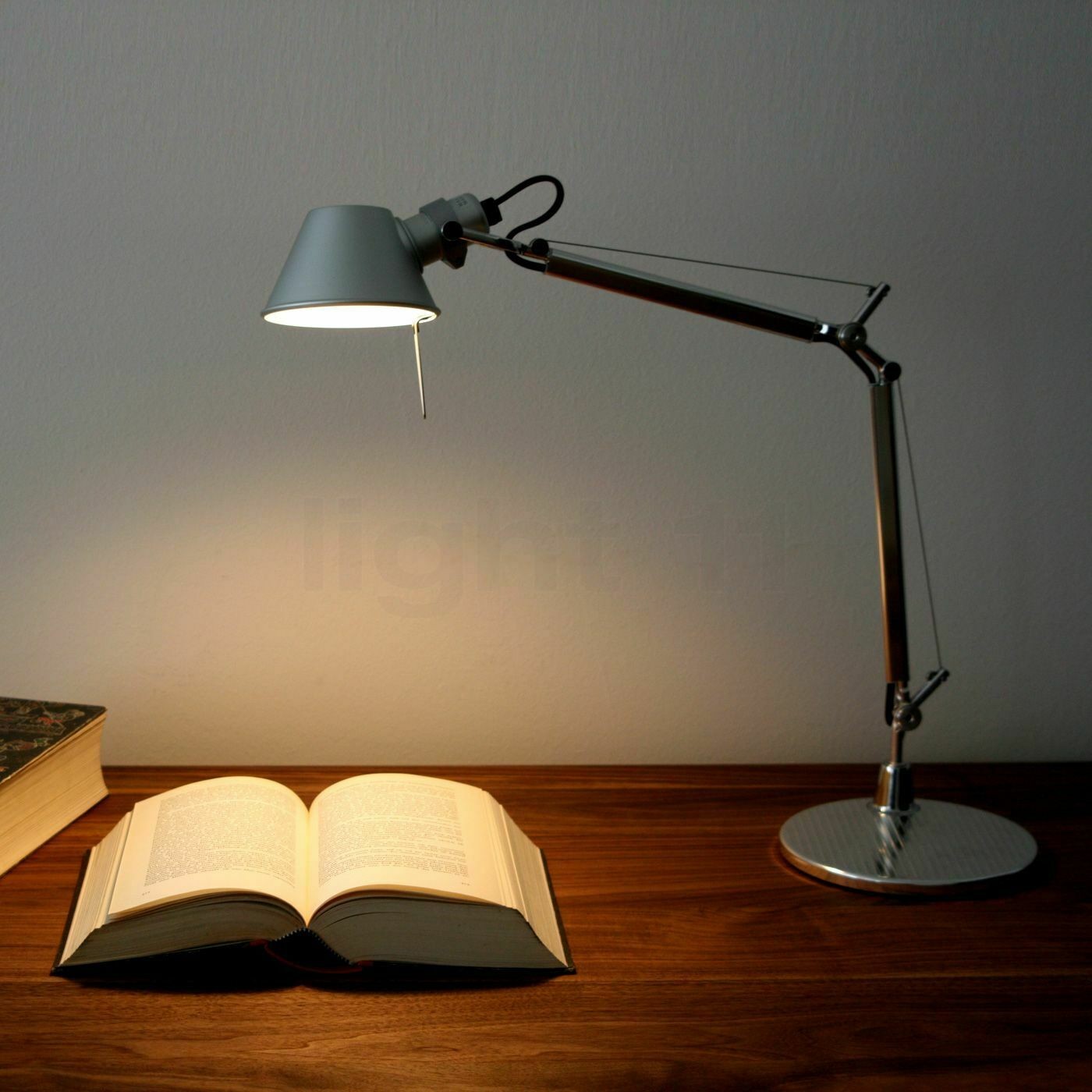 Base e struttura a bracci mobili in alluminio lucidato; diffusore in alluminio anodizzato opaco; snodi e supporti in alluminio brillantato. Sistema di equilibratura a molle. Codice riferito solo al corpo lampada
