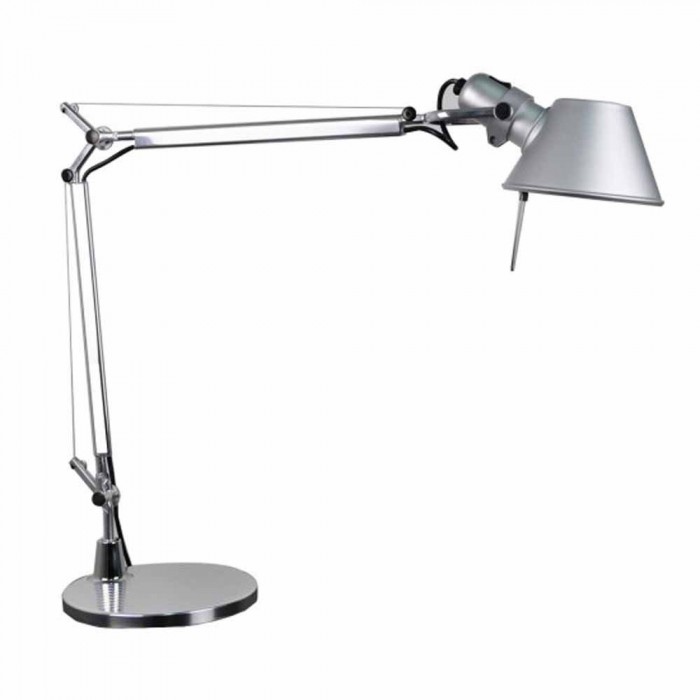 Base e struttura a bracci mobili in alluminio lucidato; diffusore in alluminio anodizzato opaco; snodi e supporti in alluminio brillantato. Sistema di equilibratura a molle. Codice riferito solo al corpo lampada.