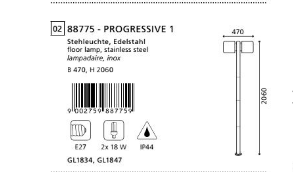 LARGHEZZA: 47 CM ALTEZZA: 206 CM WATTAGGIO: 2 X 18 CM PRESA / LAMPADINA: ES / E27