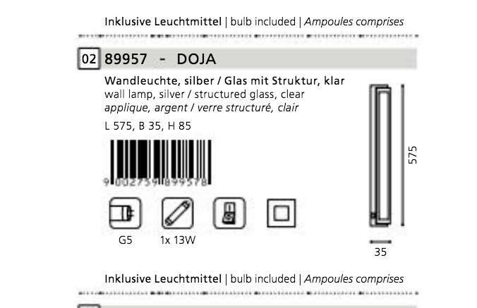 Eglo 89957 Doja Applique Sottopensile