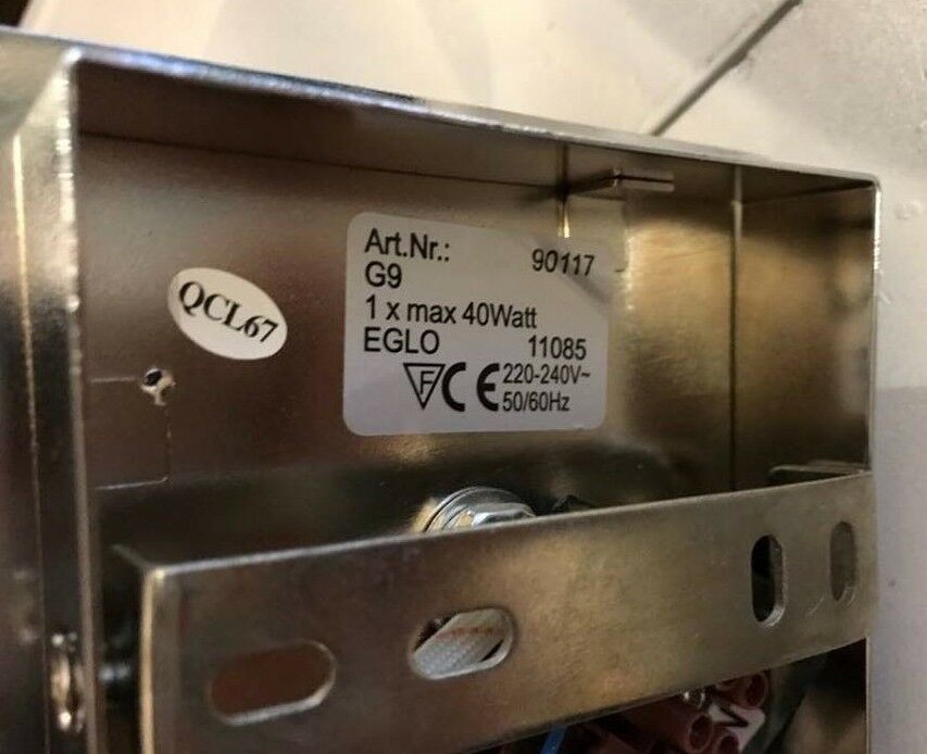 Produttore Eglo Materiale metallo; vetro Colore Cromo Tipo di attacco G9 Numero di lampadine 1 Potenza elettrica 33 W Massima potenza elettrica 33 W Massima potenza assorbita della lampada 33 W Altezza 115 mm Larghezza 110 mm Lunghezza 110 mm Peso 0,67 kg Grado di protezione (IP) IP20 Tensione di alimentazione 230 V Classe di efficienza energetica C