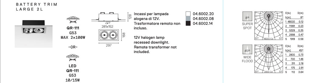 Flos / Antares Battery Incasso Large 2L Mercurio QR-111 G53 04.6002.08