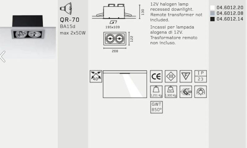 Incassi per lampade di alogenuri metallici. Alimentatore elettronico non incluso.
