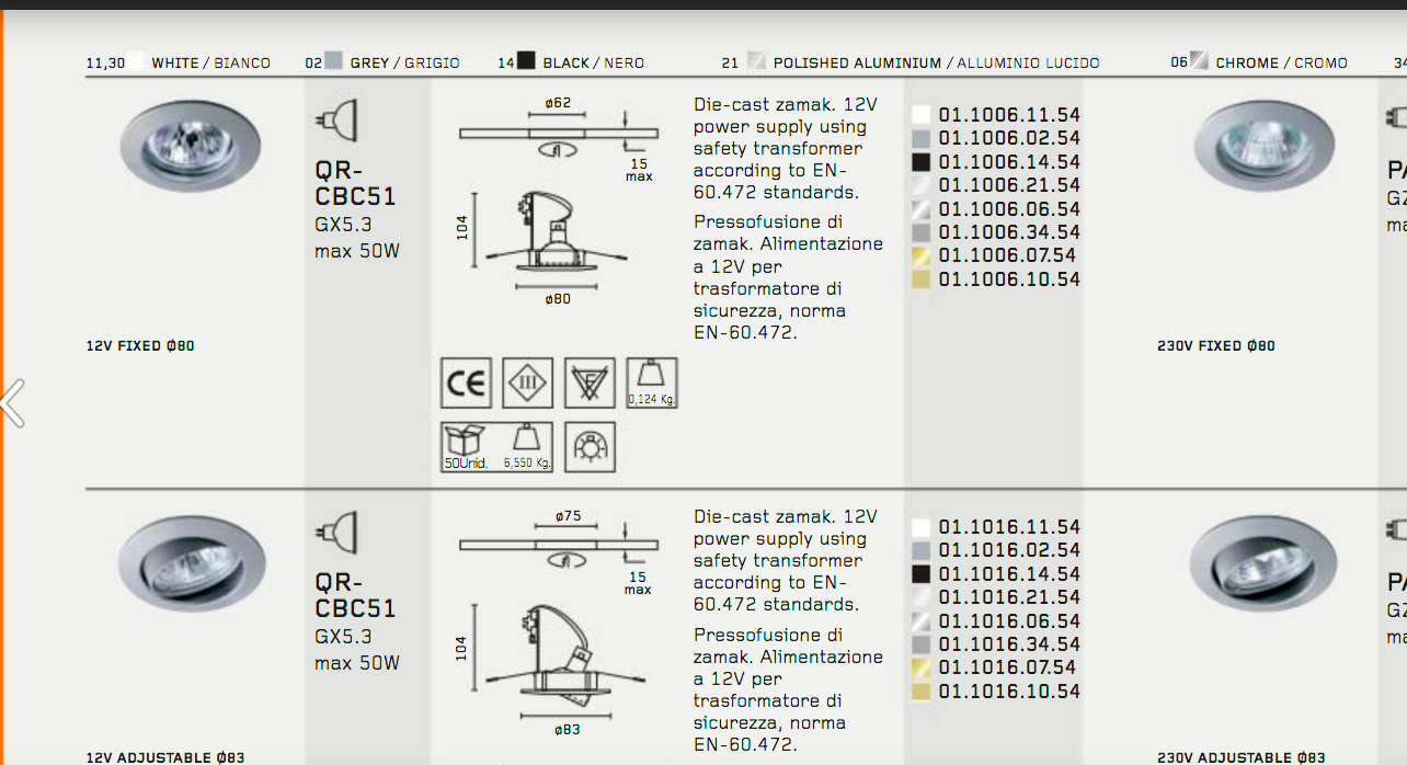 Flos / Antares Faretto A Incasso Fisso Oro QR-CBC51 GX5,3 1006 D.8 cm