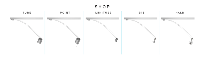 Shop MiniTube : Apparecchio di illuminazione da installare su binario 12V a parete. Adattatore per binario integrato.
