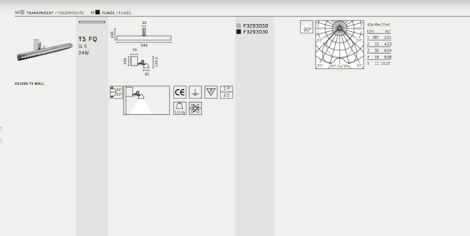 Sorgenti luminose: Fluorescenti tubolari (T5) (diametro 16 mm) tipologia "FQ" ed attacco G5; potenza 1 x24W.