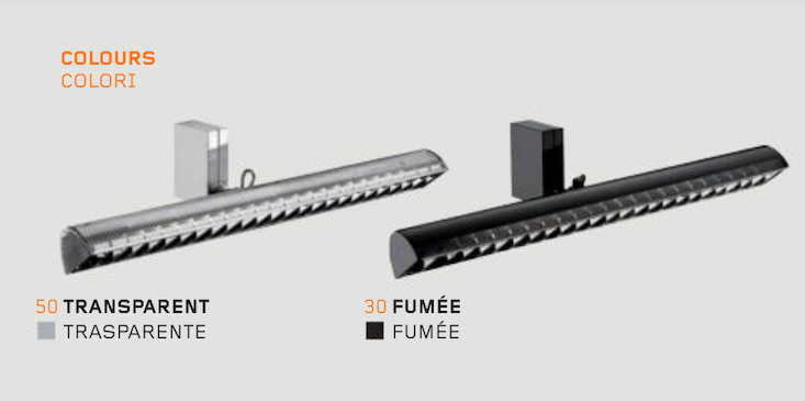 L'installazione a parete avviene mediante in doppio attacco in acciaio coperte da due guance complementari in alluminio presso fuso con finitura lucidata / verniciata trasparente o verniciata di colore nero lucido a liquido. Il ballast è elettronico non dimmerabile. Disponibile nella finitura trasparene (50)